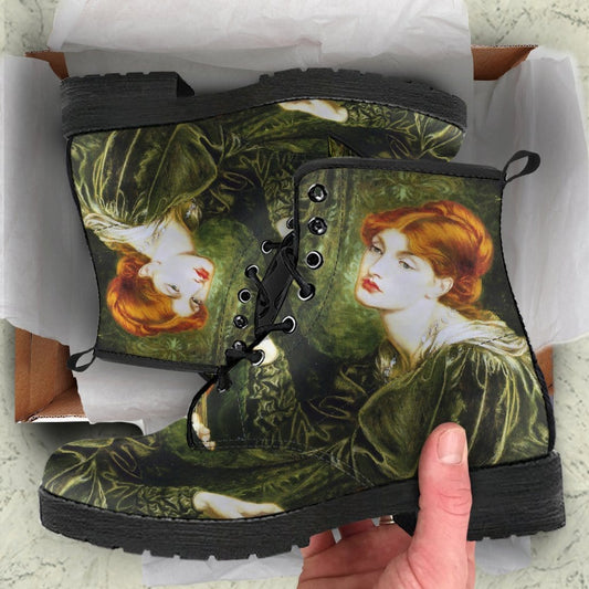 Pre-Raphaelite Green Vegan Boots, FREE Shipping