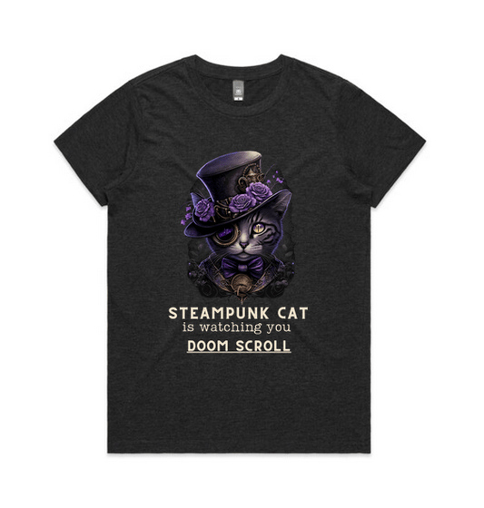 Steampunk Cat Is Watching You Doom Scroll - Women's AS Colour Maple t-shirt