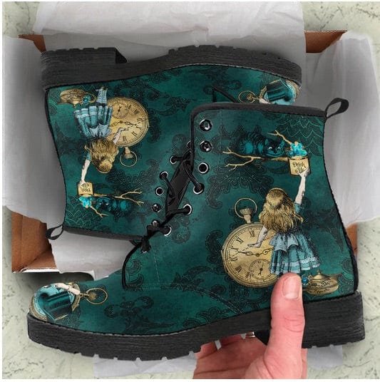 Alice in Wonderland Green, Vegan Women's Boots, FREE Shipping