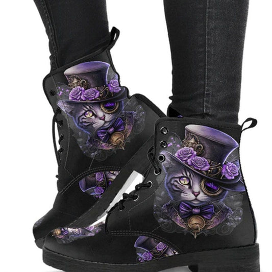 Purple Steampunk Cat, Women's Boots, FREE Shipping