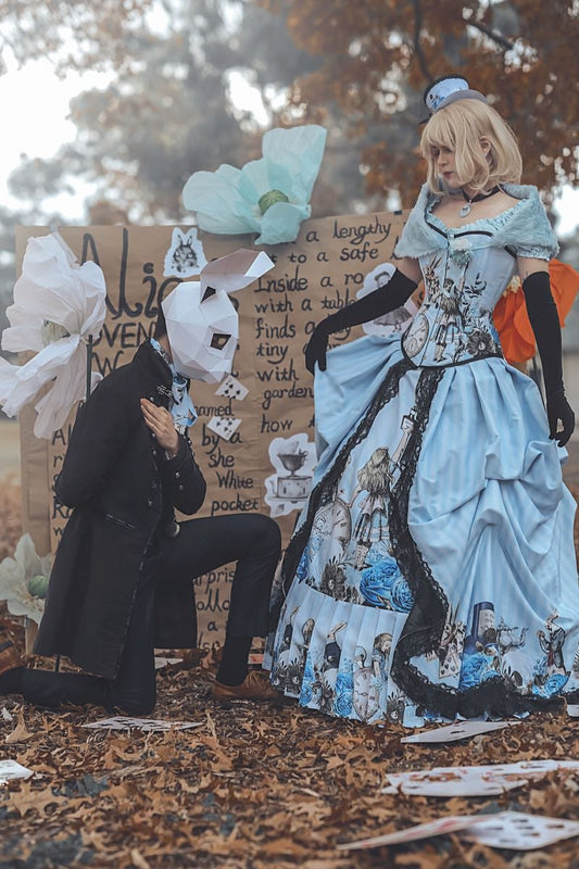 Blue Alice in Wonderland Victorian Corset Gown