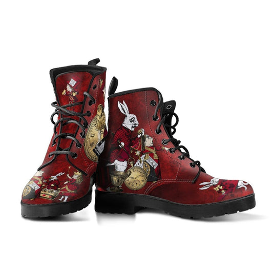 Alice in Wonderland Red Grunge, Vegan Women's Boots, FREE Shipping