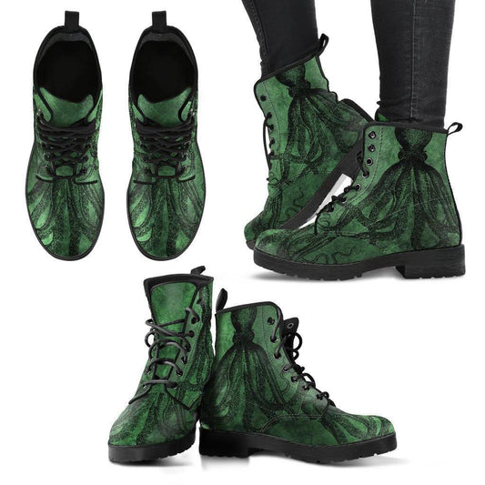 Straight Up Kraken on Green, Vegan Women's Boots, FREE Shipping