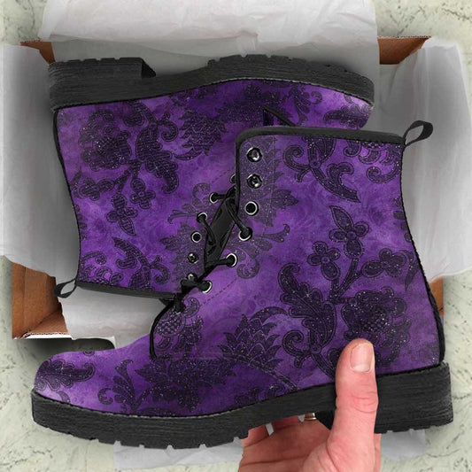 Purple Damask Printed Boots, FREE Shipping