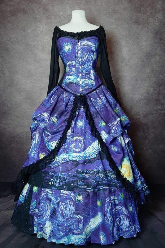 Starry Night Van Gogh Victorian Corset Gown