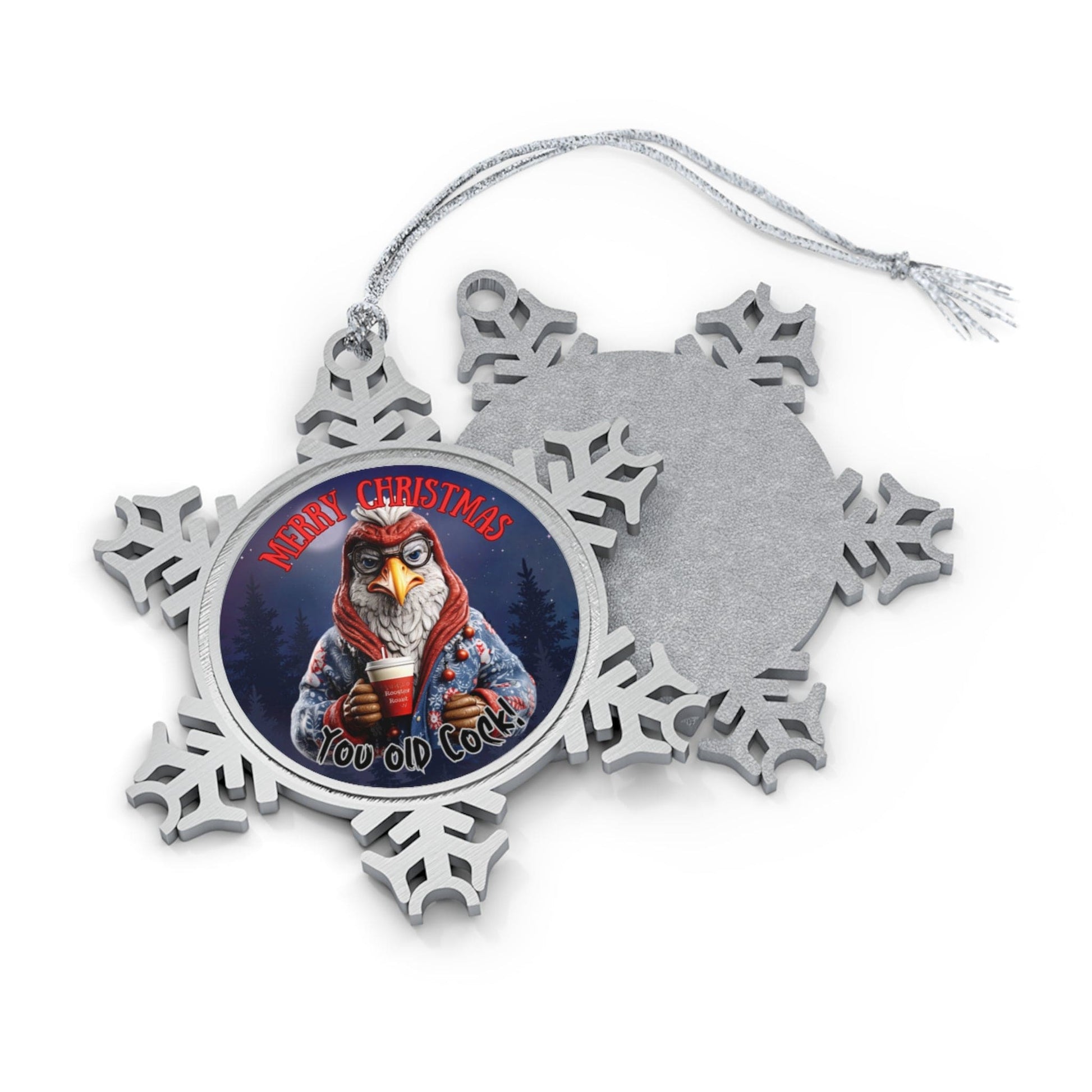 A funny Christmas ornament for a rooster in your life with a sense of humour! This pewter snowflake is high quality and made to order. Currently only available for posting within Australia this Christmas. Production takes 2 days before posting. You'll receive a tracking notification as soon as it's on its way.